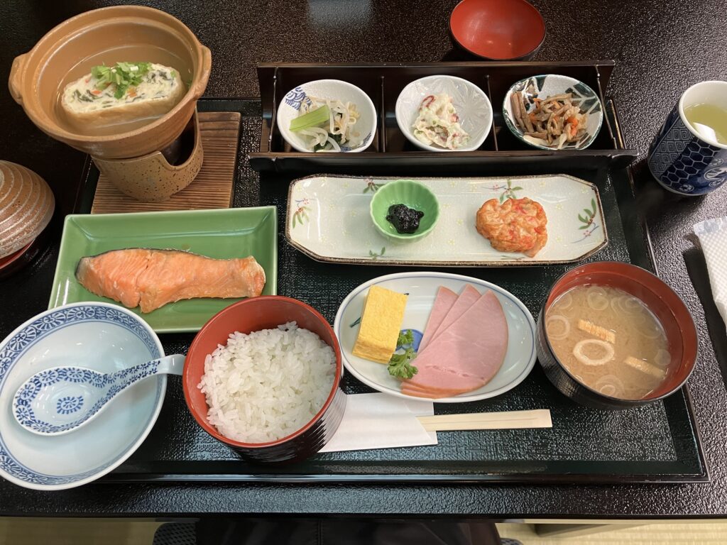 朝食7時 和定食。今のところお腹は大丈夫。いざ、さくらんぼ狩り。