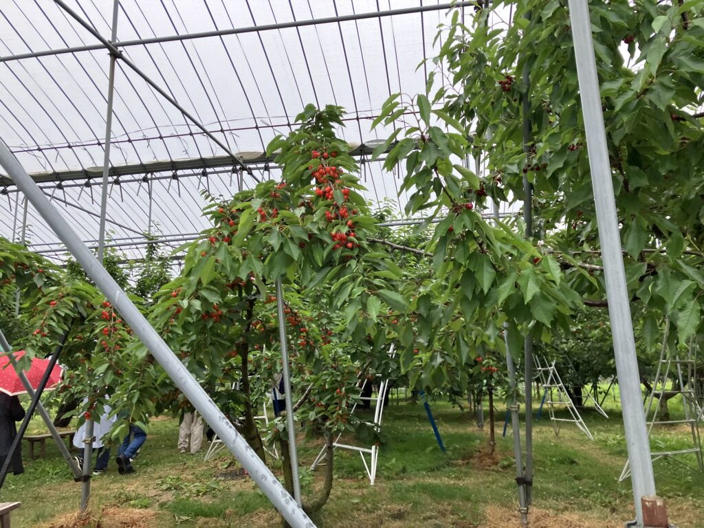 8時半、ちょっと前、 中野果樹園に到着。佐藤錦と紅秀峰があるそうだ。昨年は紅秀峰を食べ損ねたので楽しみ。さくらんぼ狩り30分。