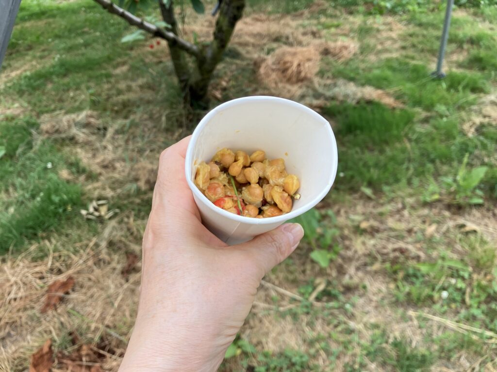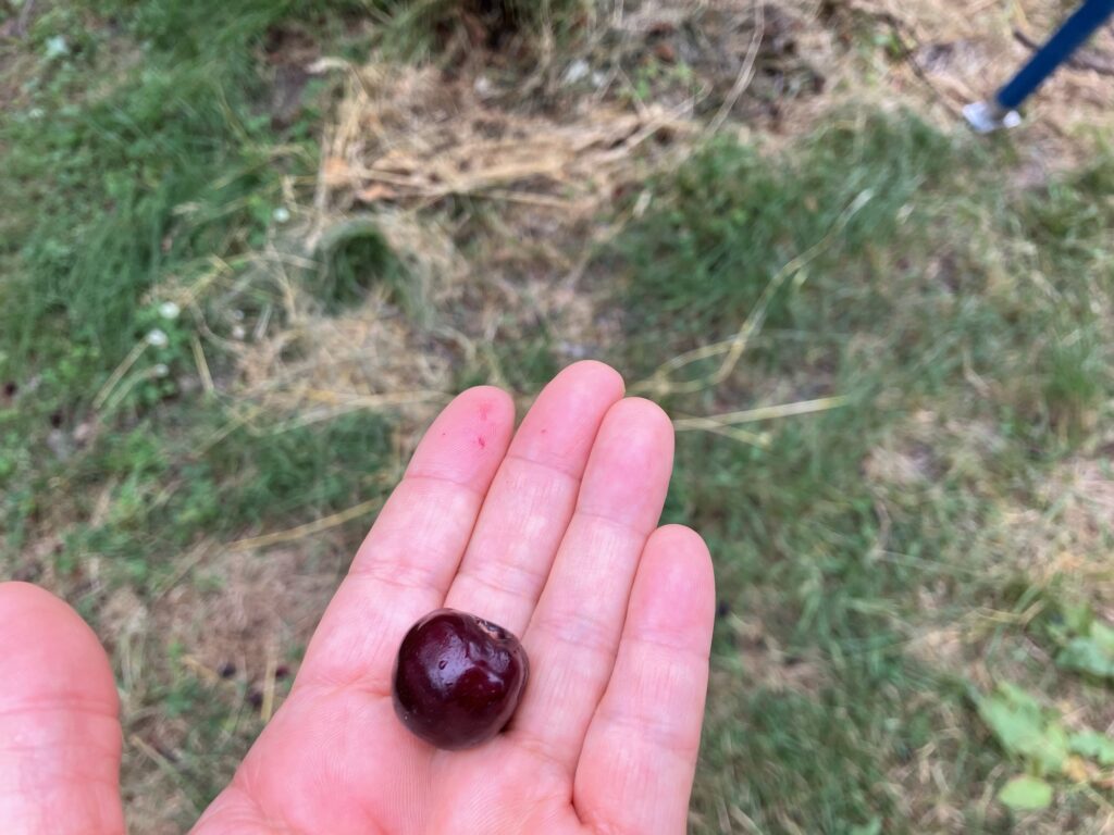 脚立に登るのが苦手な人用に、あらかじめ摘んで冷やしてあるさくらんぼも置いてあった。私はもっぱら木から直接もいで、遠慮せずに食べまくった。種はコップ半分くらいだった。