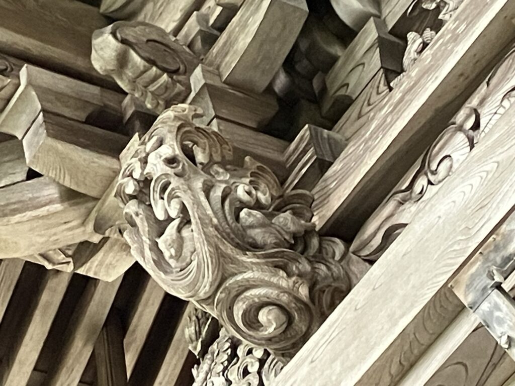 ここの熊野神社はなんでもあり、30柱お祭りしているとかで、八幡神社も皇大神社も含んでいる。本殿裏にはうさぎが3羽隠し彫りされていて、それを見つけると願いが叶うそうだが…、1つしかわからなかった。