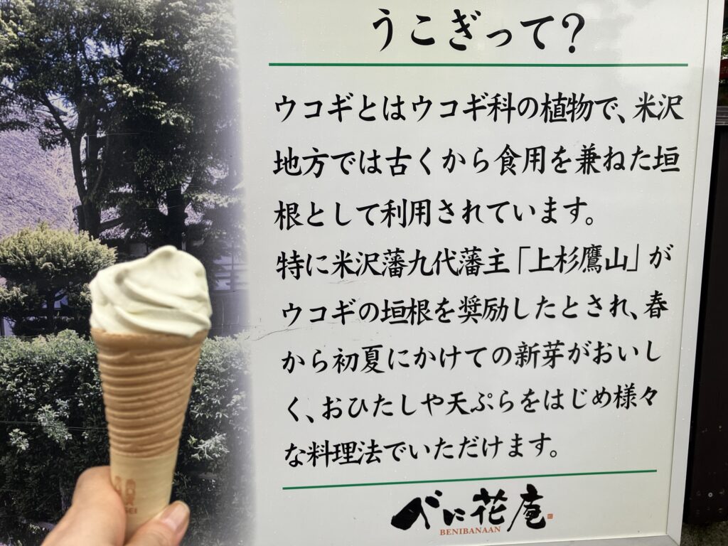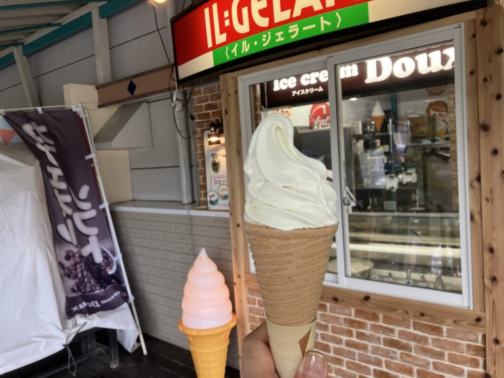 ウコギソフトクリームを食べてみた。薄緑で、うーん、あまり葉っぱの味はしない。今回はソフトクリームはあまり当たりじゃなかったな。
