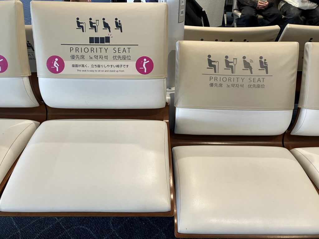 待合室のプライオリティ・シートに高さの区別があるところがあった。足腰の悪い高齢者が立ち上がりやすいように、ということだろうか。