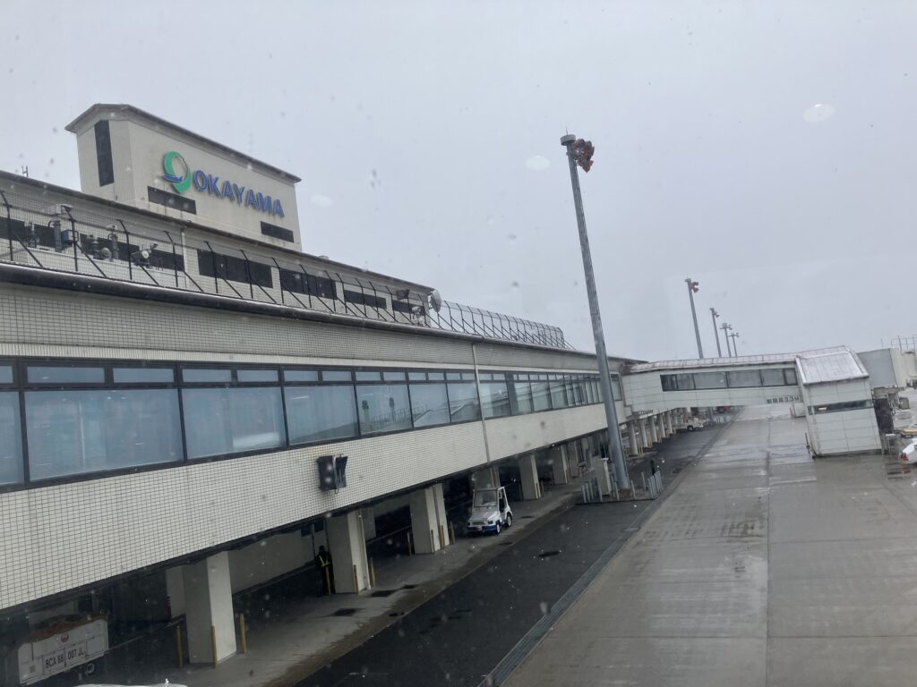まもなく岡山到着というところでガタガタ揺れて…、風と視界不良で着陸出来なかったので再挑戦、それで失敗したら羽田に引き返すというアナウンスが。