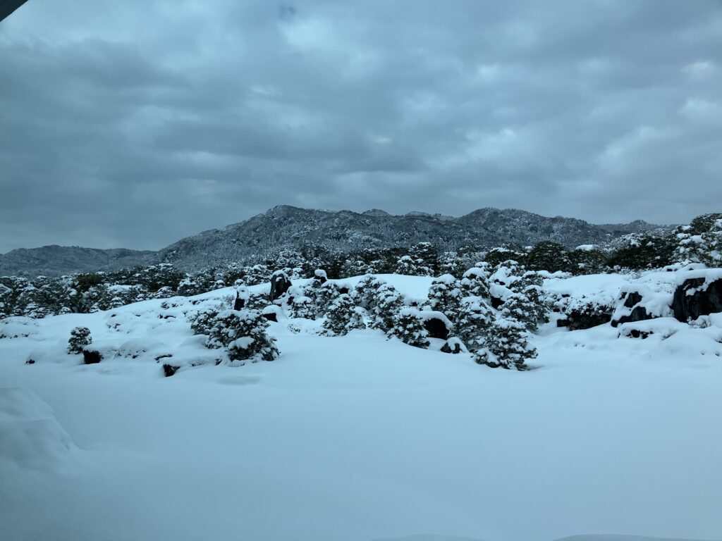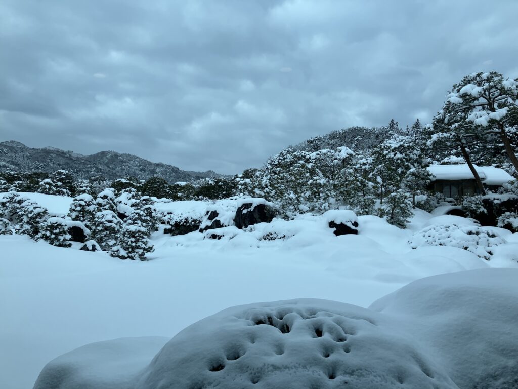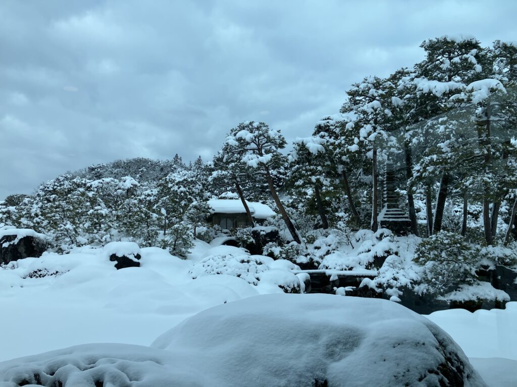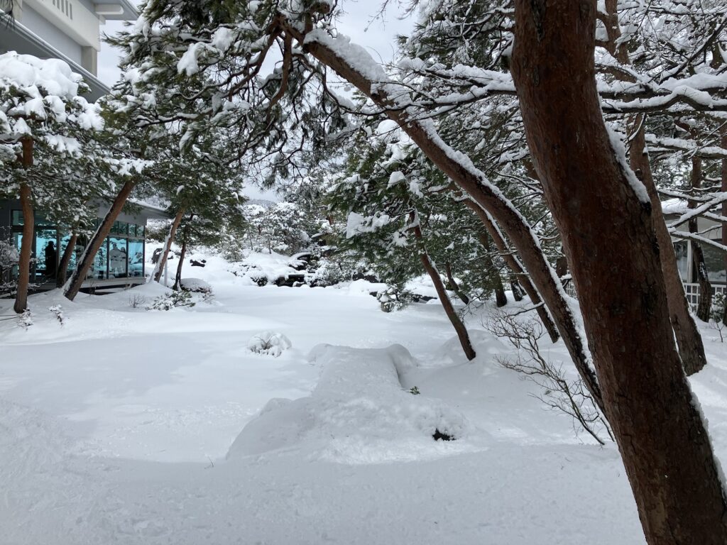 お庭は雪が深くて何が素晴らしいのかさっぱりわからない状態。