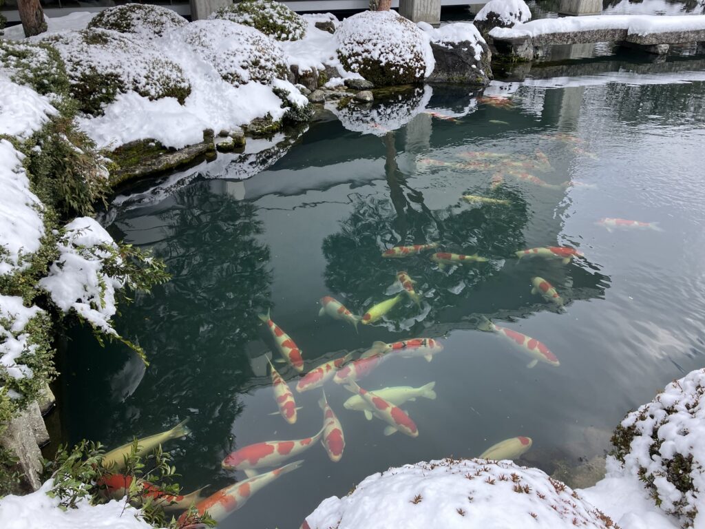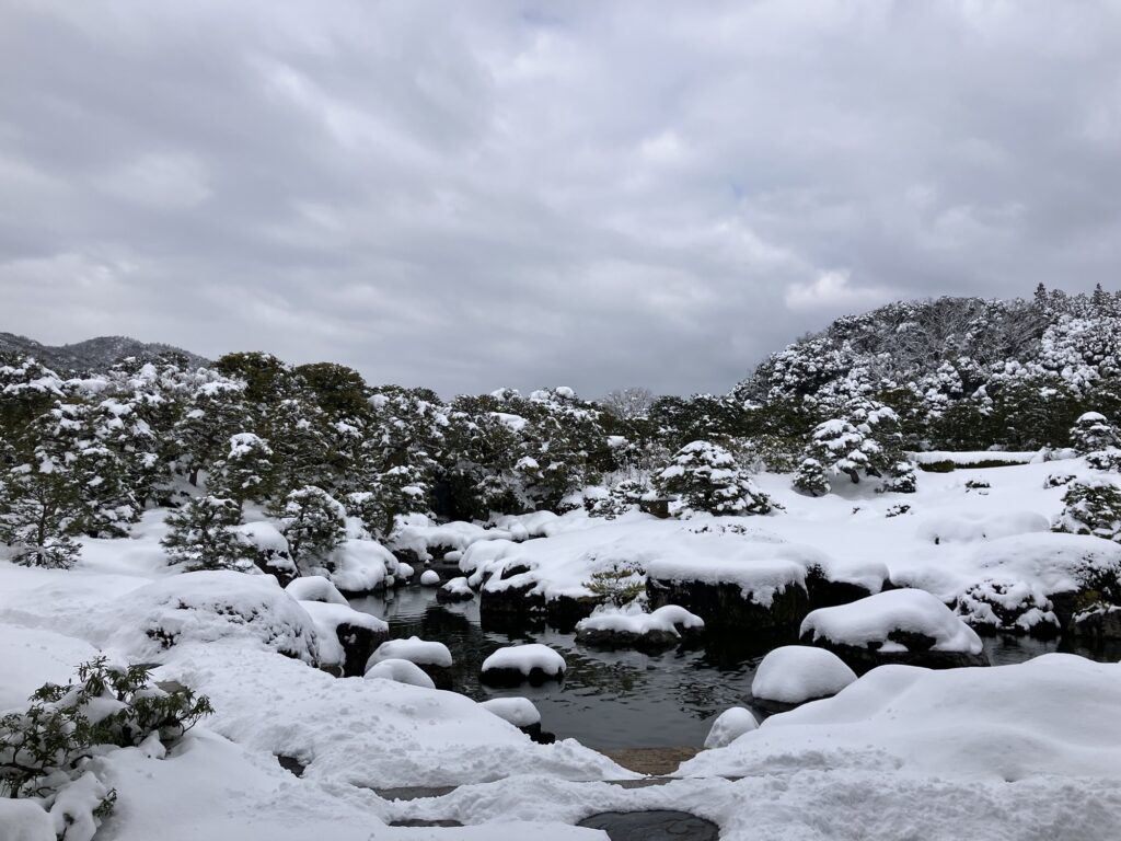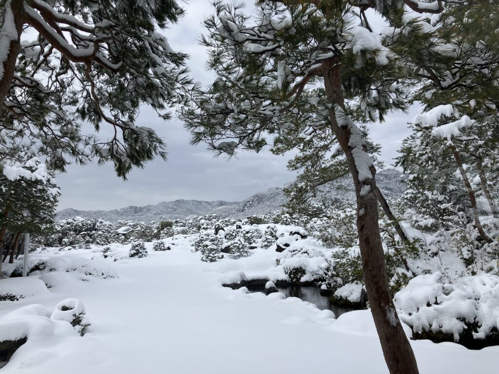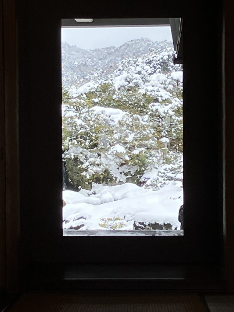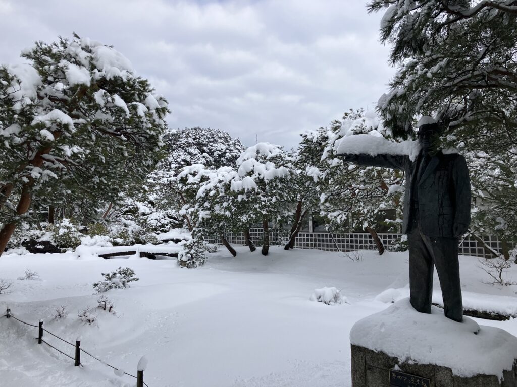お庭は雪が深くて何が素晴らしいのかさっぱりわからない状態。