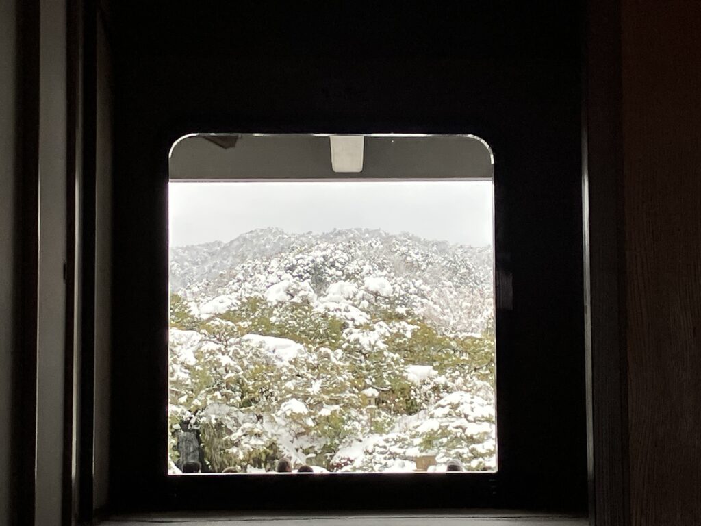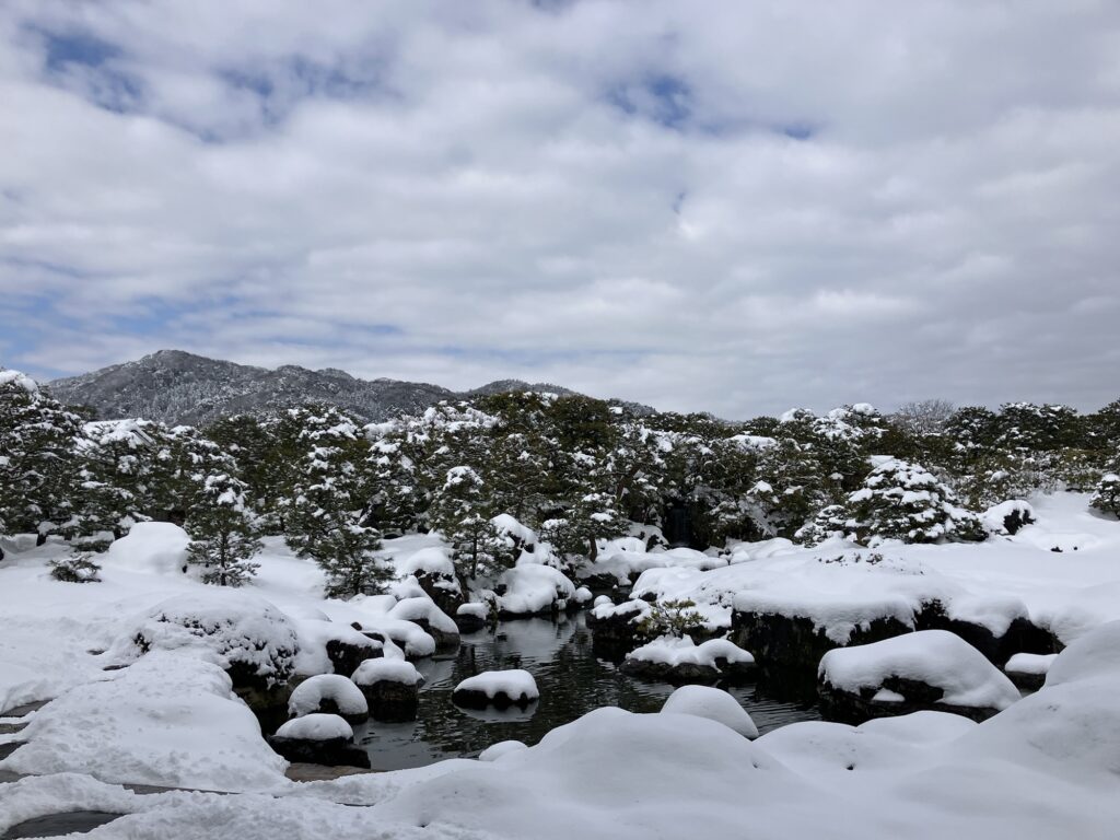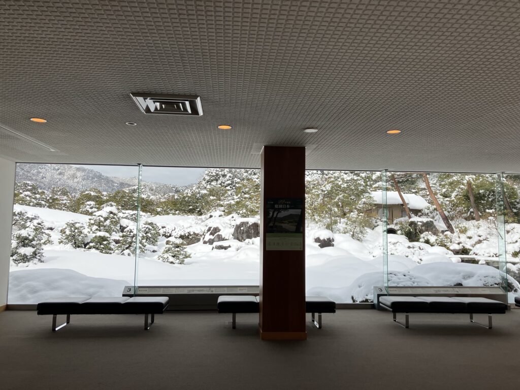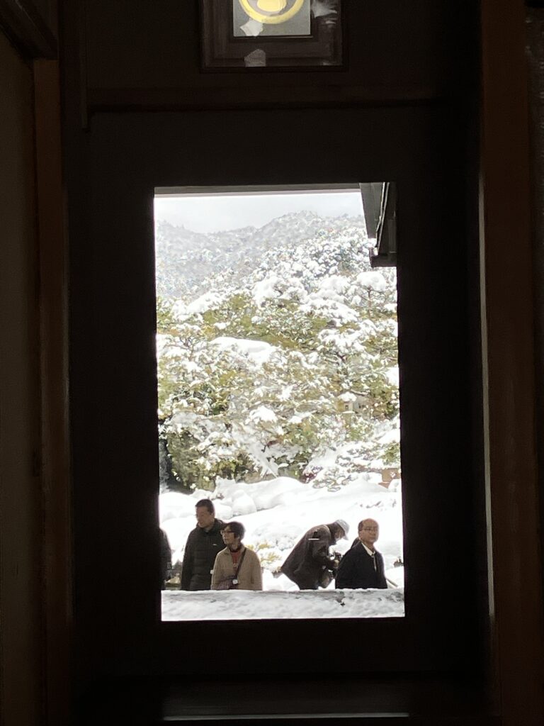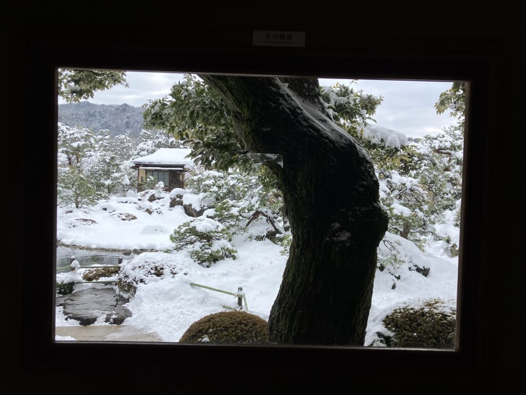 出発時は雪は止んでいたが、その後降ったり止んだり。旅程の変更は添乗員の一存ではなく、本部が決めるそうだ。足立美術館にはとりあえず行くが、昼食予定の「千屋牛」は山の中で行程的に難しいということで無しになった。