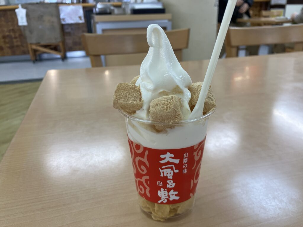 蒜山ジャージー牛乳ソフトクリームの大風呂ソフト、濃くておいしかった。